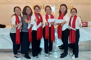 商務(wù)部同仁在這次晚會中踴躍報名,積極參加,表演了大合唱《陽光總在風雨后》。舞臺上燈光耀眼,歌聲悠揚,平日里認真工作的商務(wù)部同事們一改往日的謹慎細致,每個人都拿出了自己最灑脫的狀態(tài),在舞臺上盡情展現(xiàn)各自的風采。